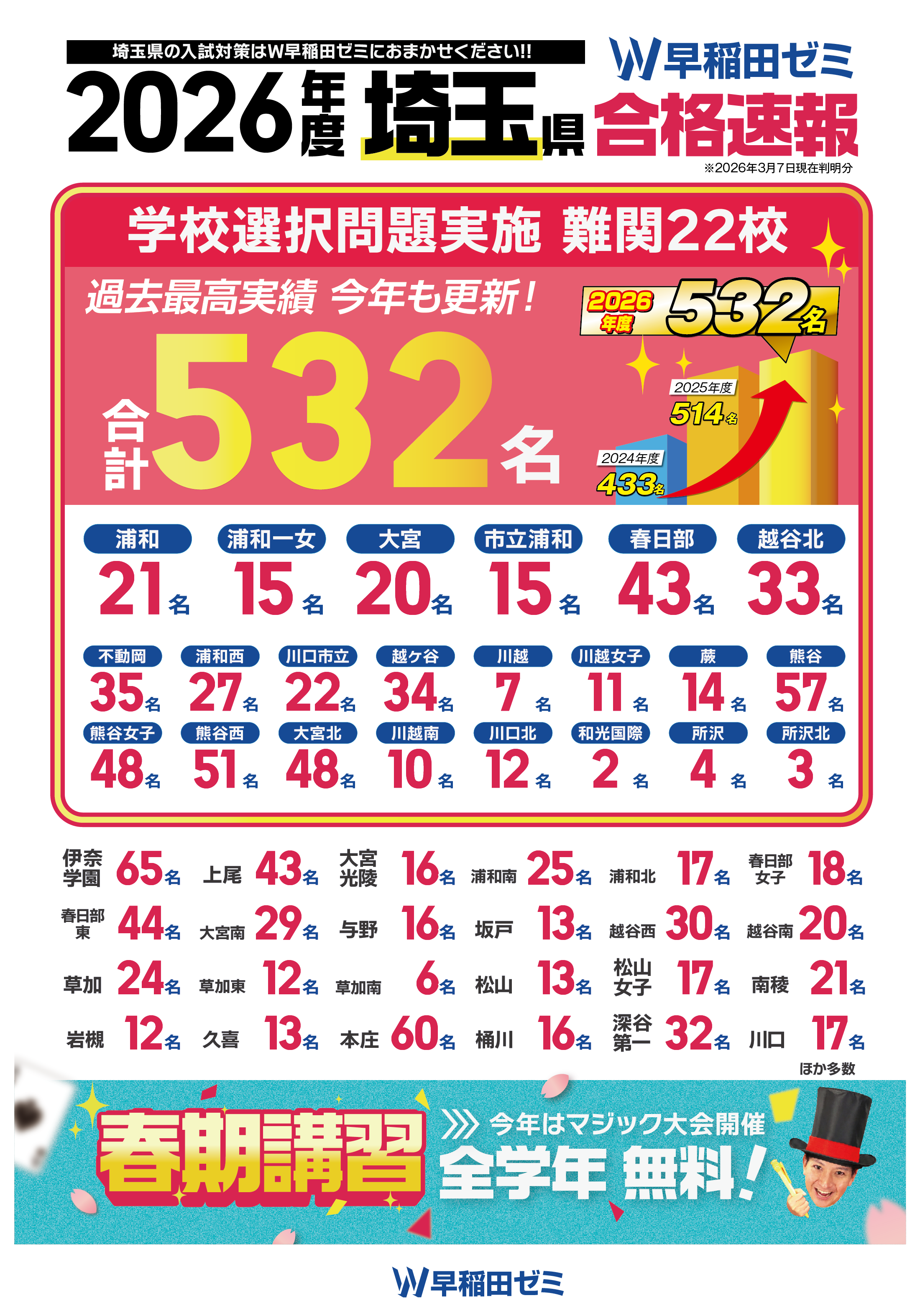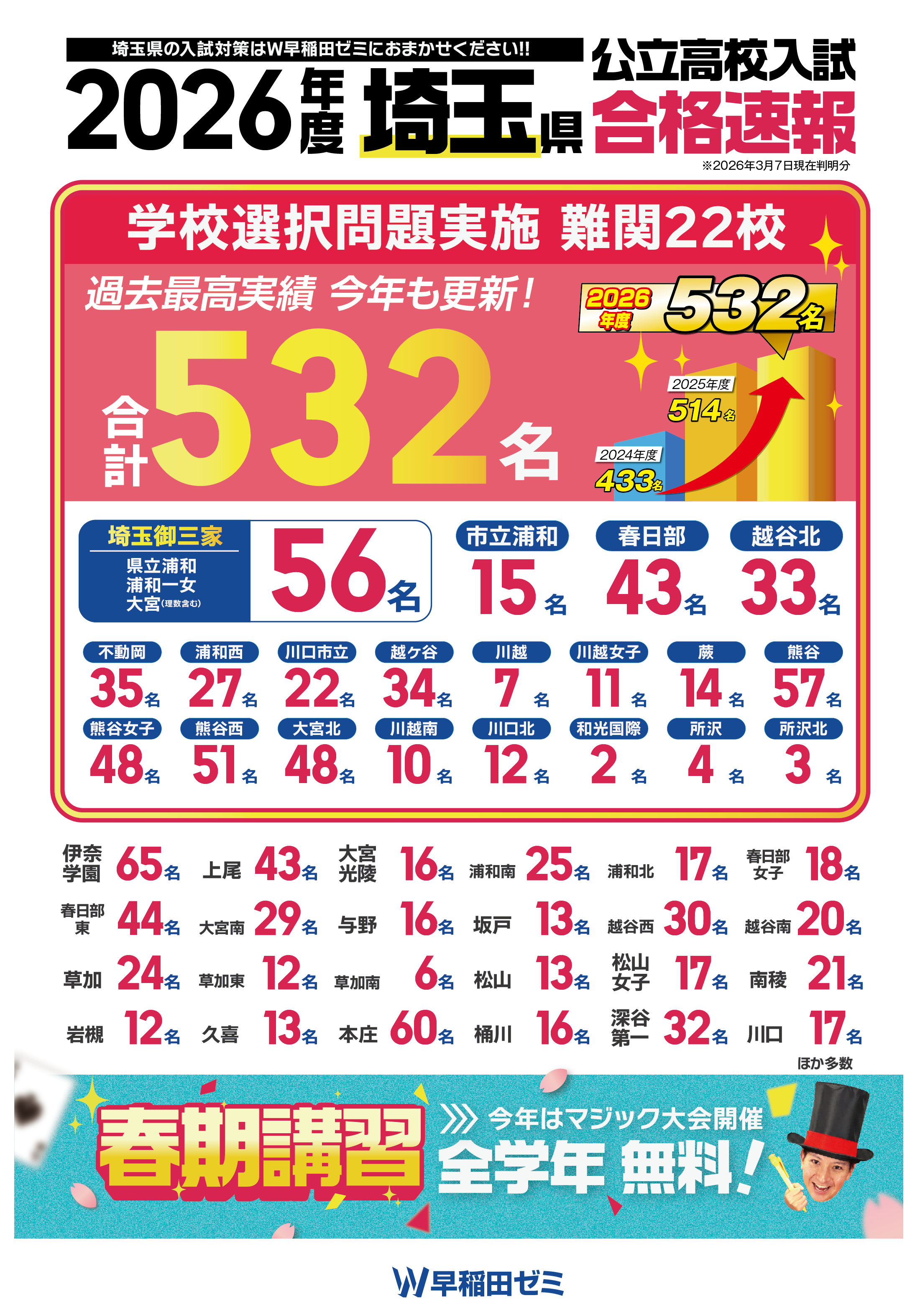 - 浦和高校 12名 / 浦和第一女子高校 13名 / 大宮高校 20名 / 高崎高校 78名