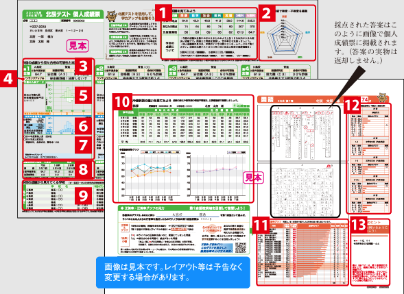 北辰テストの個人成績表に掲載されている情報は以下の通りです。(北辰テスト公式サイトより抜粋