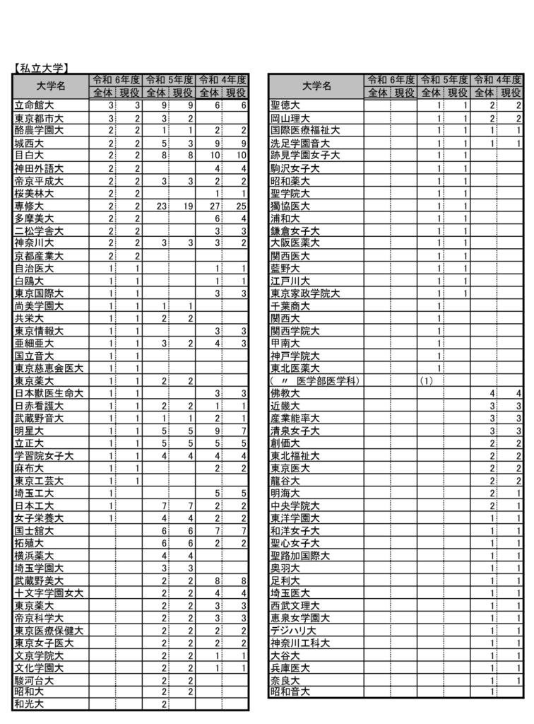 ◎2022年度入試 指定校推薦進学先(過去3年間)