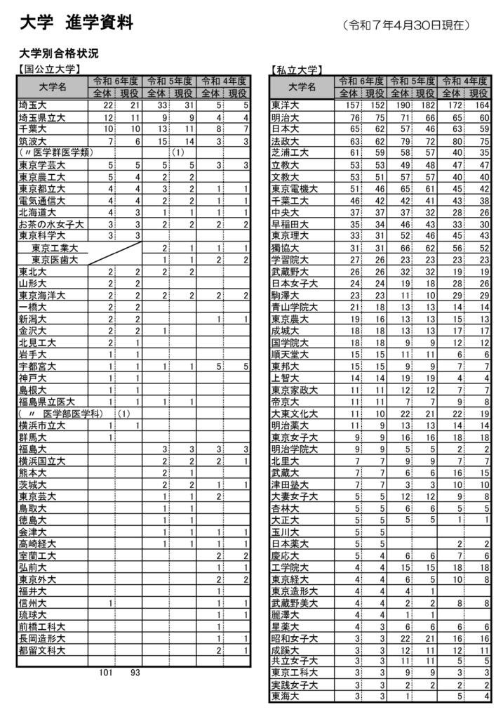 生徒の多くが、埼玉県内の国公立大学や首都圏の私立大学へ進学しています。