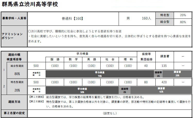 渋川高校が準ずる「群馬県立高校の入試制度」