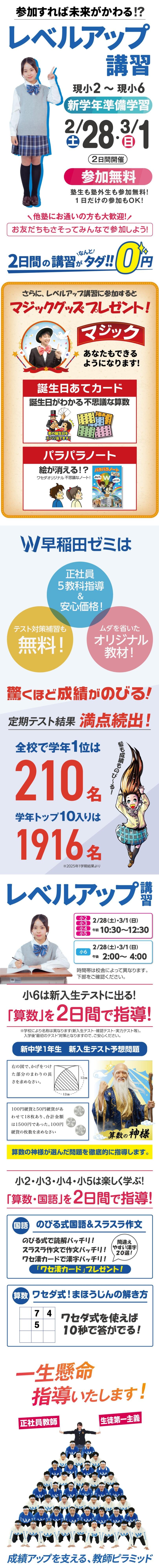 現小2~現小6 レベルアップ講習