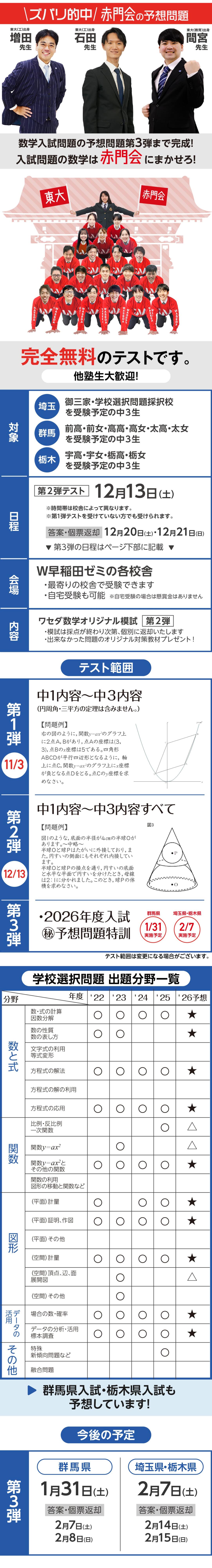 - 数学:中1内容~中3内容すべて