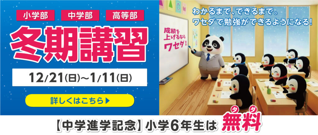 新学年準備に向けた大切な冬休みの学習は、ワセダにお任せください!