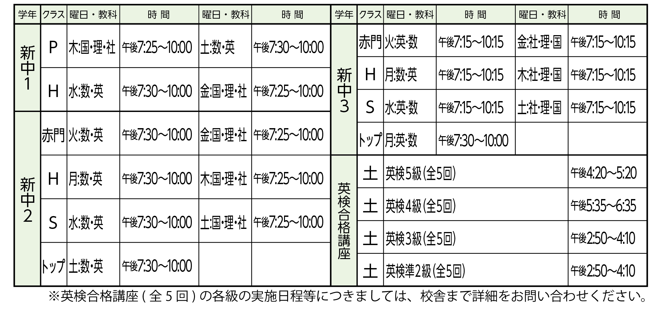 この講座は、各教科とも県立入試や模擬テストに出題される単元を集中して学習し、中1・中2単元をメインに入試レベルで徹底的に学習していく講座です。