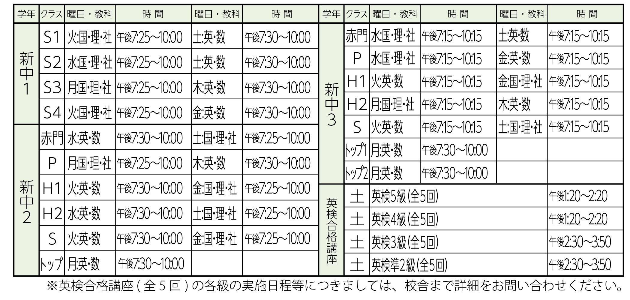この講座は、各教科とも県立入試や模擬テストに出題される単元を集中して学習し、中1・中2単元をメインに入試レベルで徹底的に学習していく講座です。