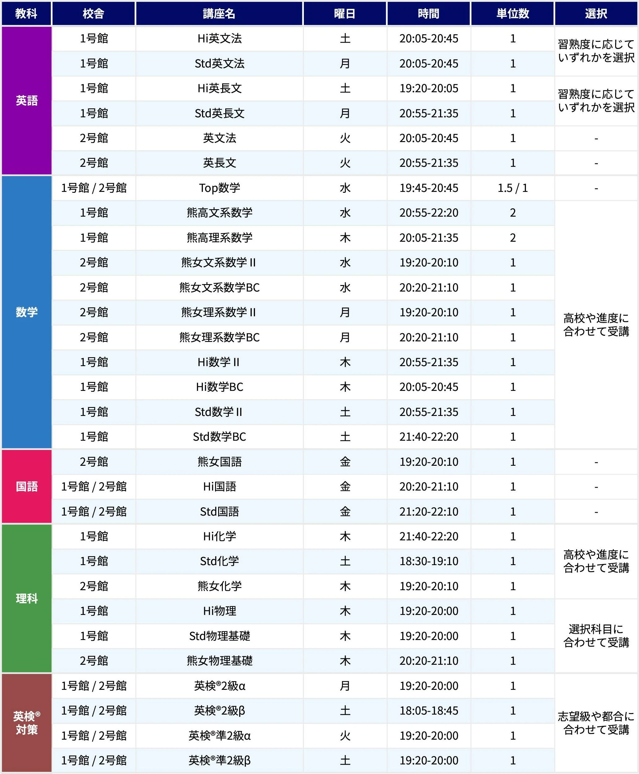 ※高1生・高2生のみ。高3生は志望レベル別講座となります。