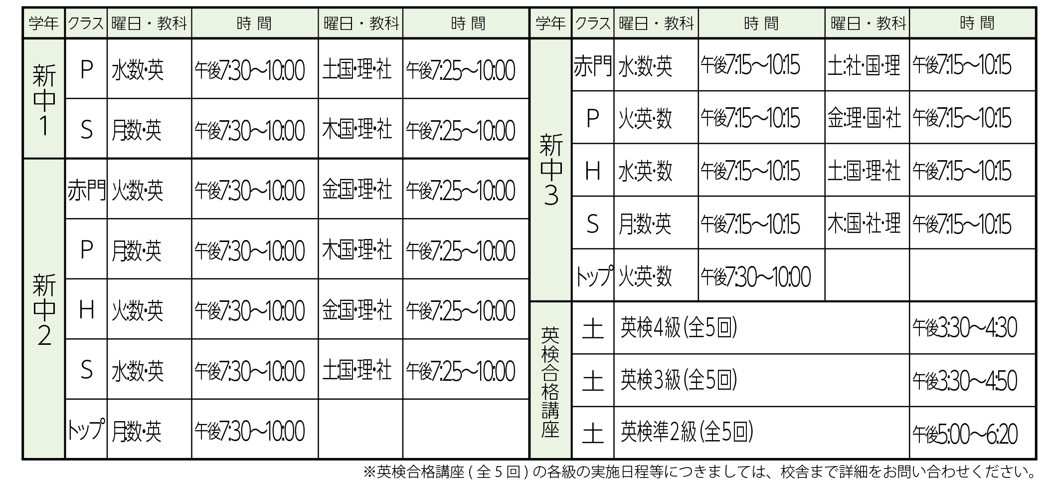 この講座は、各教科とも県立入試や模擬テストに出題される単元を集中して学習し、中1・中2単元をメインに入試レベルで徹底的に学習していく講座です。